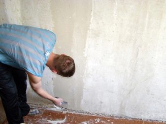 Der erste Schritt besteht darin, die Werkzeuge vorzubereiten, die für die weitere Arbeit benötigt werden. Danach können Sie die Oberfläche vorbereiten, die Sie gründlich reinigen und entfetten sowie von der vorherigen Beschichtung lösen, um das Auftreten von Delaminierung und Rissen zu vermeiden. Die Basis muss glatt sein, mit einer minimalen Anzahl von Unregelmäßigkeiten und Defekten. Metallbasen müssen mit Verbindungen mit Korrosionsschutzwirkung behandelt werden. Die Wand muss grundiert und dann getrocknet werden.