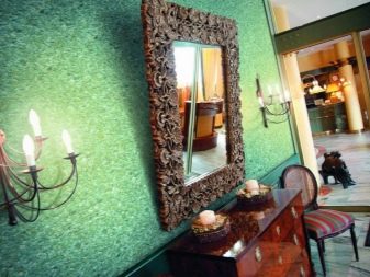 Heute gibt es Seidenputze, in denen es Glitzer gibt. Sie scheinen, wenn die Sonnenstrahlen auf sie fallen. Mit Beleuchtung können Sie eine Vielzahl von Effekten erstellen. Es ist sogar möglich, den Effekt einer durchscheinenden Oberfläche zu erhalten. Viele Verbraucher entscheiden sich für künstliche Seidenformulierungen.weil die Kosten für solche Materialien niedriger sind.