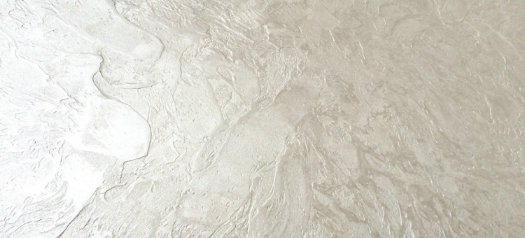 Die Verarbeitung von "nasser Seide" kann mit der Anwendung von venezianischem Gips verglichen werden. An der Kelle muss ein wenig Mix gewählt werden. Dann beginnen Sie es mit kurzen Strichen zu reiben.
