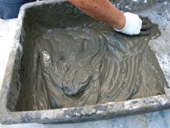 - Kneten Sie die Zusammensetzung mit hohem Zementgehalt. Um es gefrorener zu machen, mischen Sie den Putz hinein.