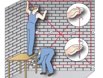 - Es wird empfohlen, die Baken an den Wänden mit Hilfe von speziellen Befestigungselementen zu befestigen, die in vielen Geschäften verkauft werden. Meistens sind in den Regalen Gegenstände für verzinkte und Kunststoffführungen vorgesehen.
