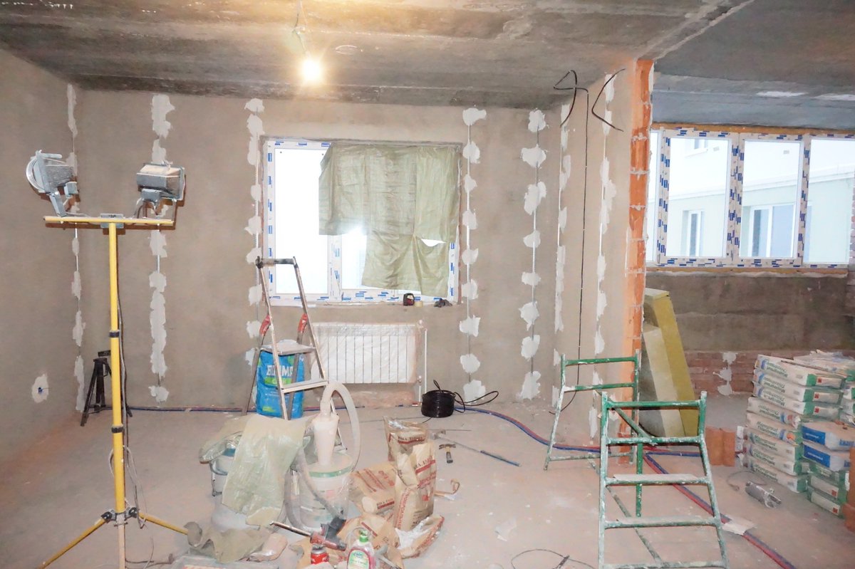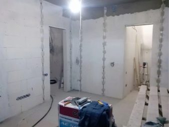 Um die Wände mit Gips auszurichten, können Sie verschiedene Arten von Leuchtkörpern verwenden.