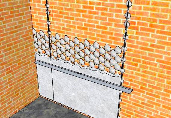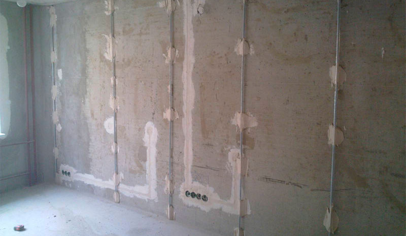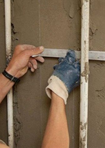- nachdem die Putzschicht vollständig trocken ist, wird die obere Schicht abgeschnitten und eine eigentümliche Landmarke gebildet, auf deren Grundlage die Wände eingeebnet werden sollten.