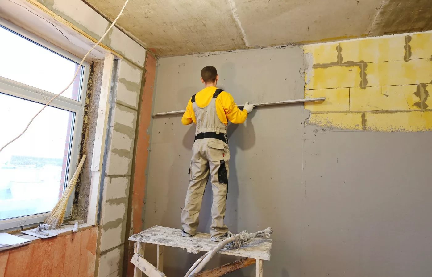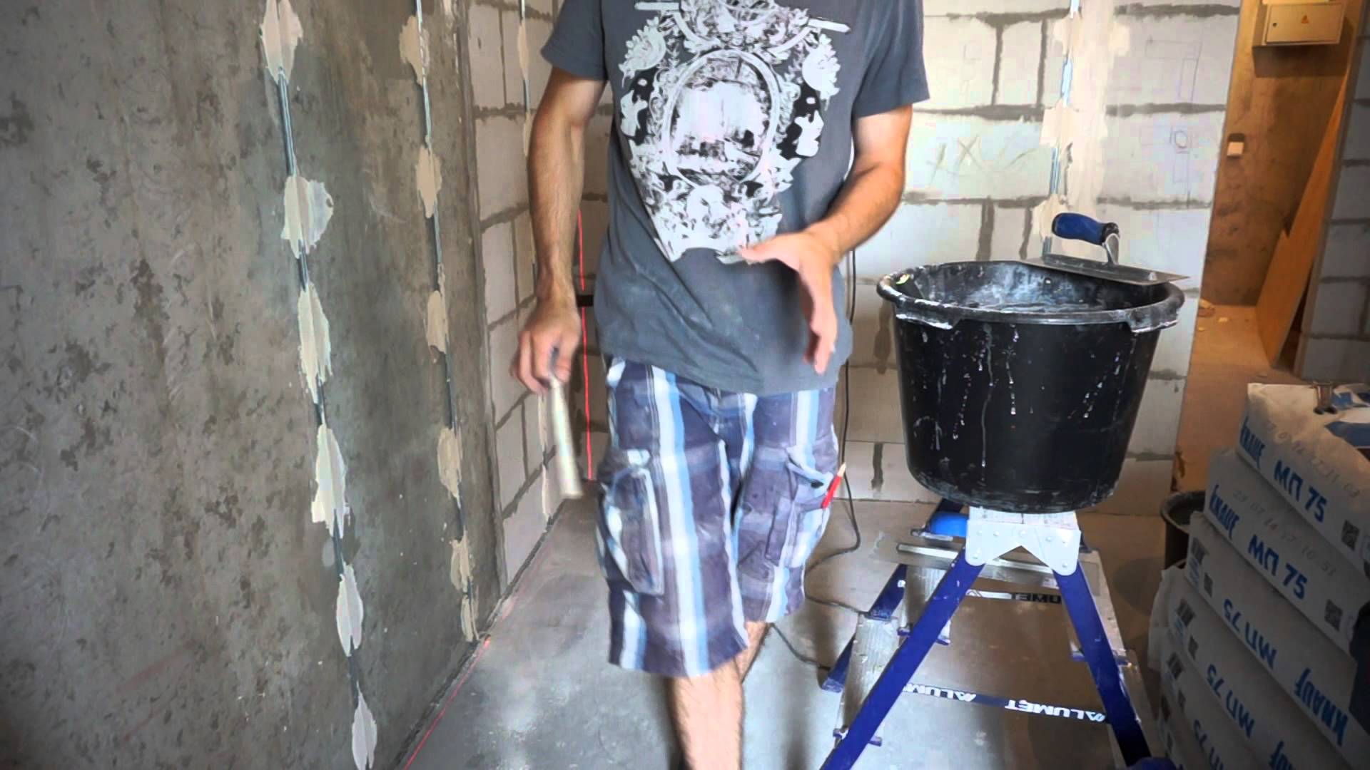 Der Prozess des Verputzens der Wände der Leuchtfeuer