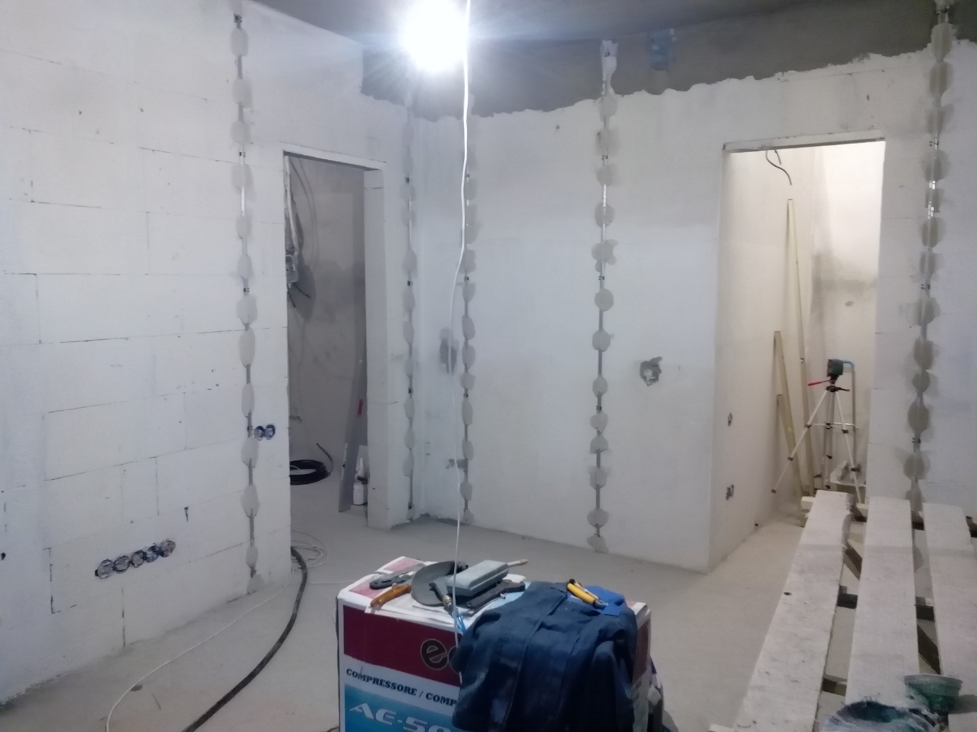 - Nachdem der Putz ausgehärtet ist, dürfen die Leuchttürme nicht entfernt werden, wenn Sie planen, die Wände mit Keramikfliesen zu versehen.