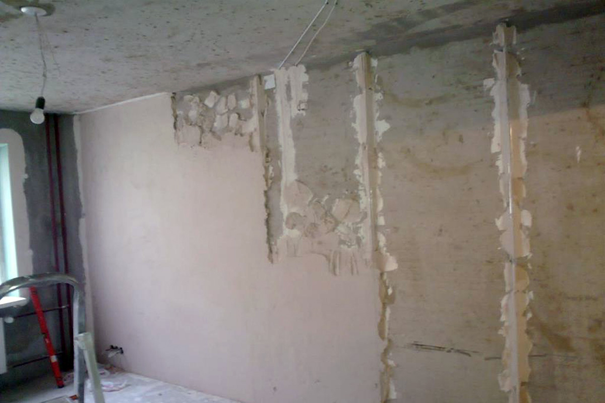 - Bevor mit dem Auftragen des Putzes begonnen wird, ist nötig es das alte Ende von den Wänden zu entfernen. Wenn wir diesen Vorbereitungsschritt vernachlässigen, wird eine ausreichende Haftung der Materialien nicht erreicht.