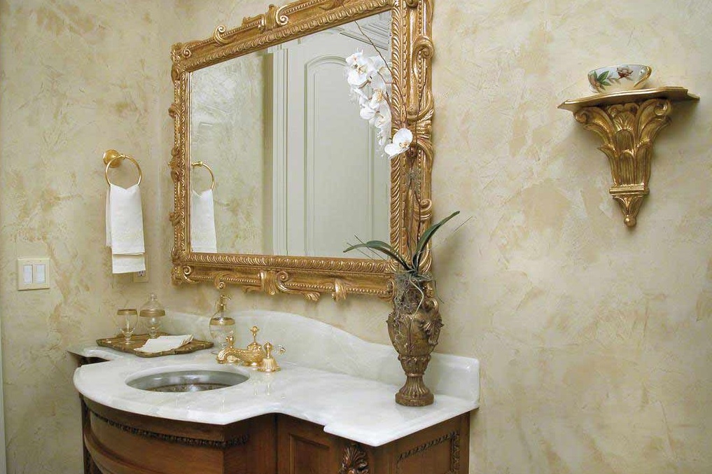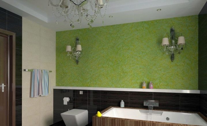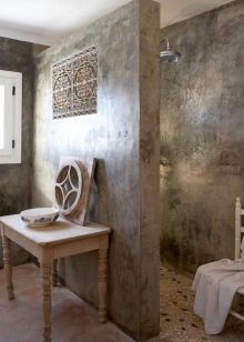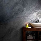 Wenn Sie durchführen möchten Venezianische Putzwand im Badezimmer, es wird empfohlen, glatte Oberflächen zu bevorzugen. Reliefstrukturen können Schimmel verursachen, da sich in den Rillen leicht Schmutz ansammelt und Wasser gesammelt wird. Ein ähnliches Material sollte für die Wände in Schwimmbädern, Saunen und Bädern gewählt werden. Achten Sie darauf, eine abschließende Feuchtigkeitsschicht aufzutragen.