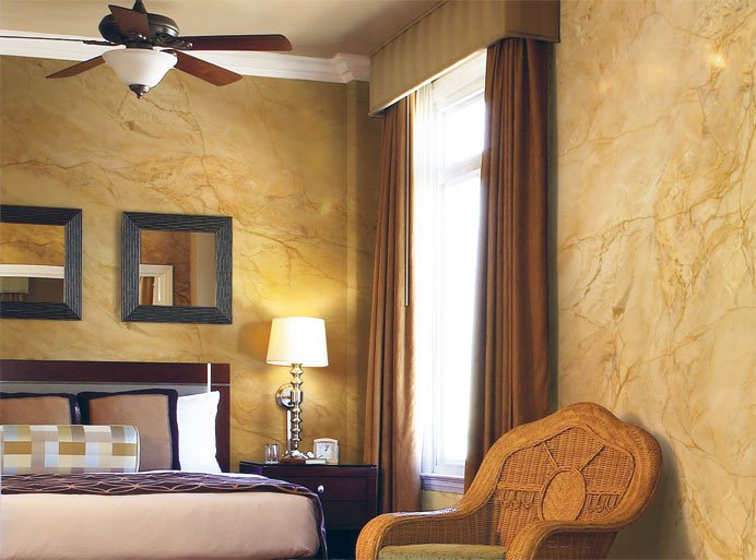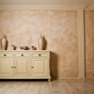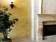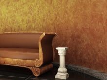 - Trevignano. Eine Polymermischung und eine spezielle Anwendungstechnik werden verwendet, wodurch die Wirkung einer Marmorwand wieder hergestellt wird, als ob sie von innen durch die Sonne beleuchtet würde. Es wird angenommen, dass die resultierende Imitation in der Nähe der Oberfläche des Felsens namens Travertin ist. Travignano sieht am besten in den Wohnzimmern des barocken Esprits und des Vintage-Interieurs aus.