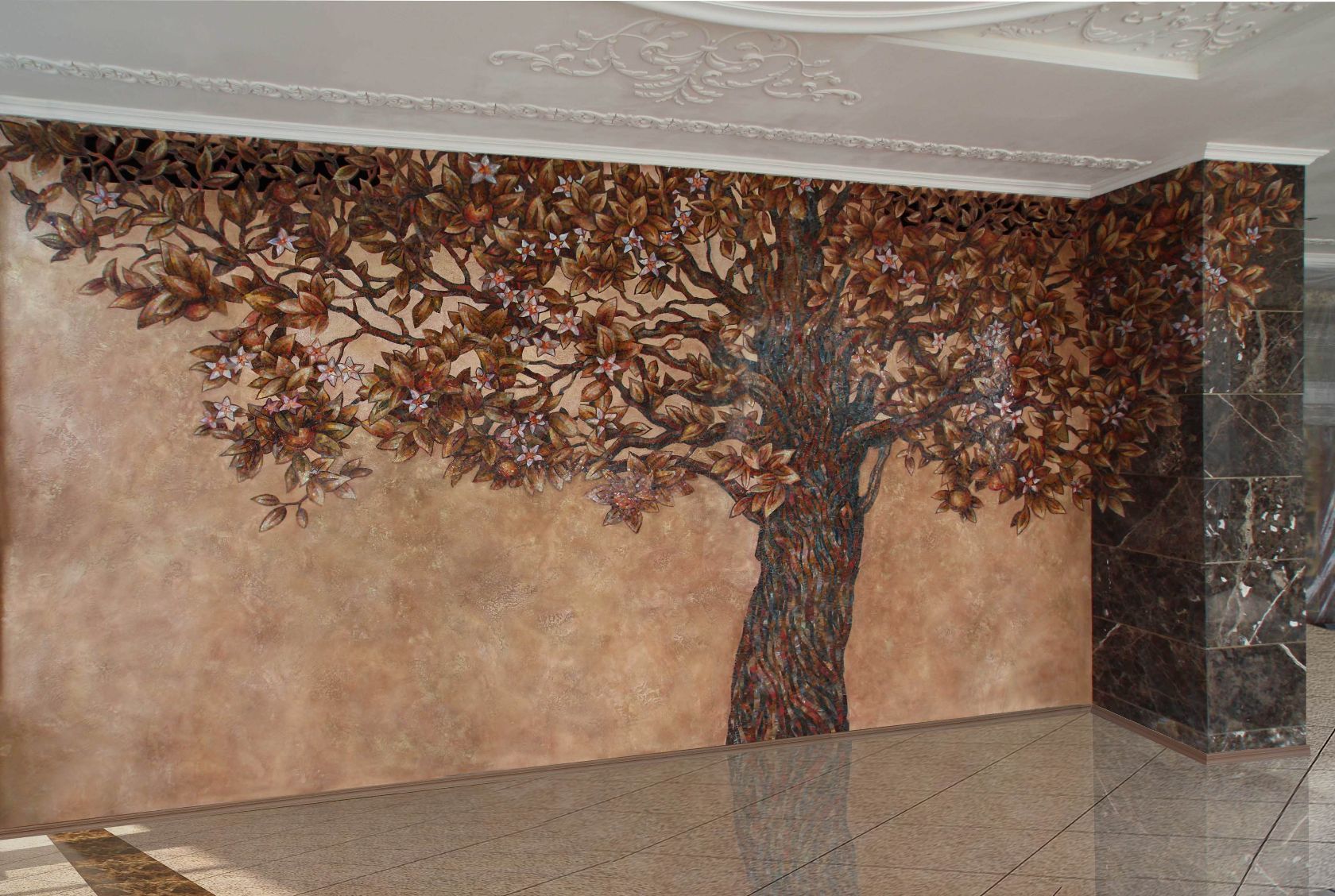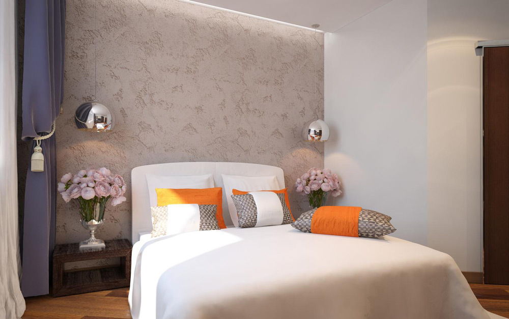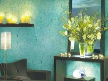Venezianischer Gips wird dazu beitragen, den Raum dynamisch und hell zu machen, ihn mit der Energie der Natur zu füllen. Um dies zu tun, ist es ausreichend, die Reliefzusammensetzung der feinen Fraktion einer gesättigten grünen oder orange Farbe zu wählen. Hauptsache, die Farben waren hell, aber nicht sauer, sondern natürlich.