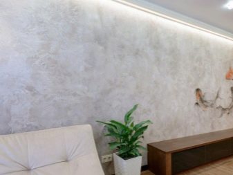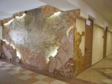 Durch die Vielfalt an Materialien, Farbtönen und Anwendungstechniken können Sie ein exklusives Interieur schaffen. Mit Hilfe eines solchen Finish ist es möglich, seltene und teure Steine zu imitieren. Gleichzeitig ist das Verputzen im Vergleich zur Verwendung von Naturstein einfacher und billiger.