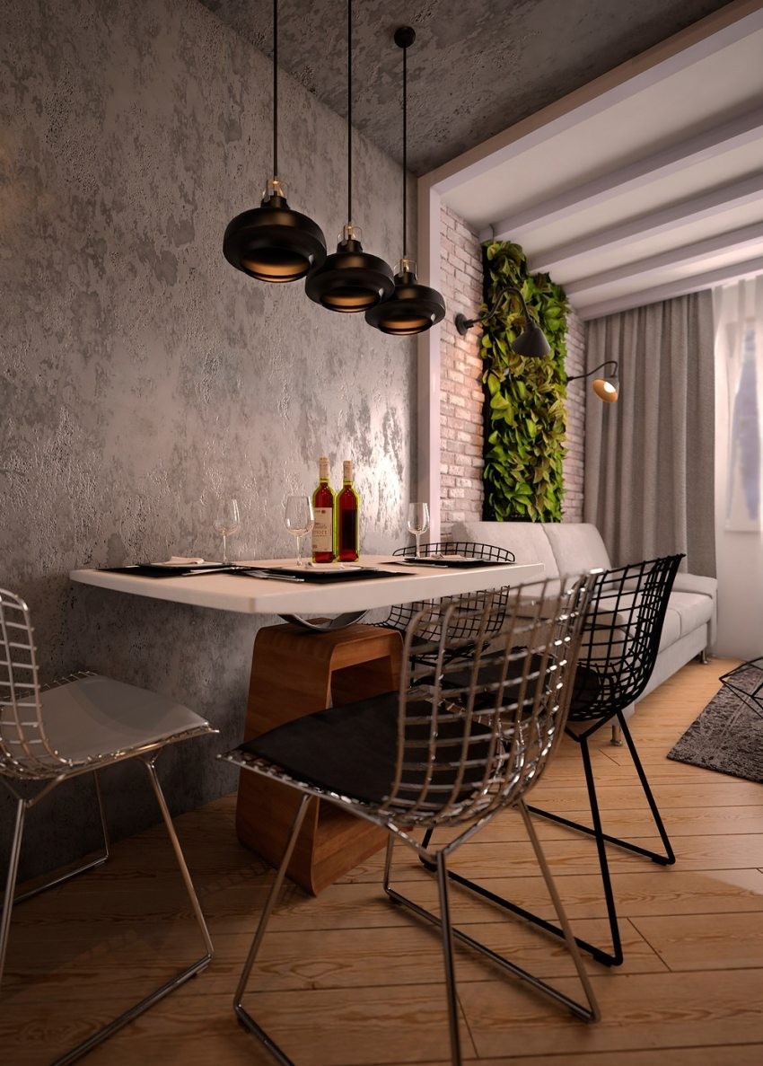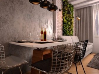 Es ist am besten, diese Idee in der Küche oder im Esszimmer zu verwenden. Genug kleine "Insel", um den Raum zu beleben. Vergessen Sie nicht, die helle Farbe der Wand mit passendem Zubehör beizubehalten. Für Studio-Apartments und Loft-Stil Häuser, raue venezianischen Putz einer satten Farbe wird eine Zoning-Methode. Es ist jedoch nicht notwendig, die aktive Farbe zu wählen, da Sie den Raum mit polaren Texturen begrenzen können.Eine sanftere Mischung zum Auftragen auf die Wände im Aufenthaltsbereich und Wohnzimmer, strukturiert - in der Küche.