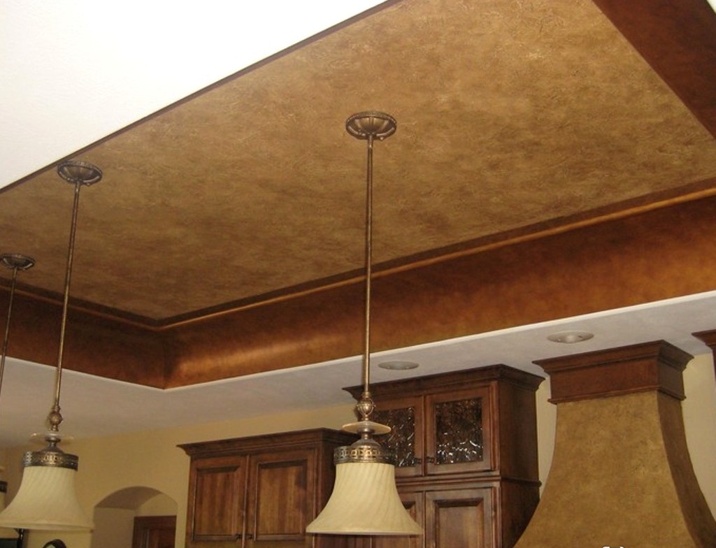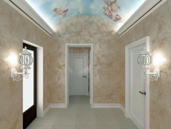 Einer der neuesten Trends in der Innenarchitektur ist die Anwendung von venezianischem Putz an der Decke. Das ist natürlich ein mühsamer und aufwändiger Prozess, der viel Vorarbeit erfordert: die Organisation einer Gipskartondecke. Aber das Ergebnis ist es wert.