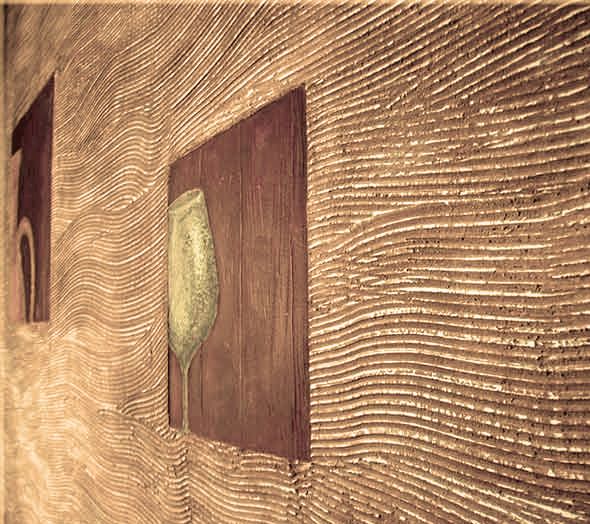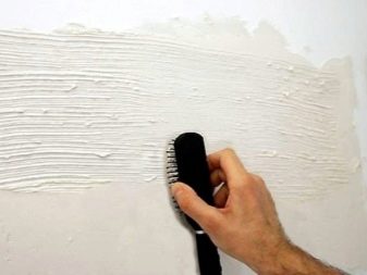 Chaotische Rillen werden auf einer frischen Putzschicht mit einer Metallbürste oder einem Besen ausgeführt. Nach dem Auftragen wird empfohlen, die Rillen ein wenig zu glätten, indem Sie die Oberfläche mit einem feuchten Schwamm überstreichen. Ein interessanter Effekt, genannt Graffito, kann erreicht werden, indem 3 Schichten des beschriebenen Gipses in verschiedenen Farbtönen aufgetragen werden. Ohne auf das vollständige Trocknen der letzten Schicht mit oder ohne Schablone zu warten, werden die oberen Schichtpartikel entfernt. Das Ergebnis ist ein interessantes Mosaik.