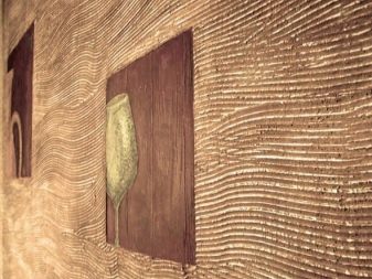 Nicht weniger beliebt sind Zusammensetzungen, die eine Imitation von Holz-, Samt- und Seidenoberflächen bieten.