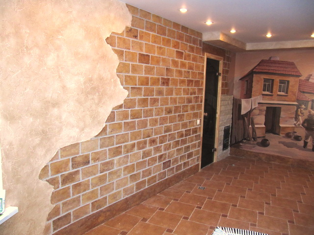 Übrigens haben Experten einen Weg gefunden, diese Methode billiger zu machen.Anstelle des Auftragens von Krakellack wird die verputzte Schicht beispielsweise mit einem Infrarotstrahler zwangsgetrocknet. Dadurch bilden sich auf der Oberfläche Risse, die dann zu einer dunkleren Farbe getönt und schließlich mit einem farblosen Lack überzogen werden. Der behandelte Teil der Wand ist mit Wachs bedeckt.