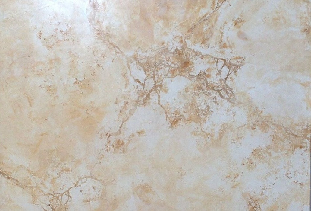 Um eine spektakulärere Oberfläche zu erhalten, die Marmor nachahmte, wurden 2-3 Farbschattierungen verwendet, die aufeinander aufgebracht wurden. Eine größere Anzahl von Schichten ermöglicht es Ihnen, die Tiefe der Farbe, Ausdruckskraft der Textur zu erreichen.