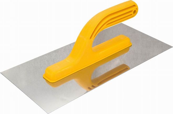 Die erste Primerschicht wird mit einem Standardspachtel aufgetragen und nach dem Aushärten gereinigt. Für nachfolgende Schichten müssen Sie einen flexiblen Spatel verwenden, mit dem Sie ein bogenförmiges Muster erstellen können.