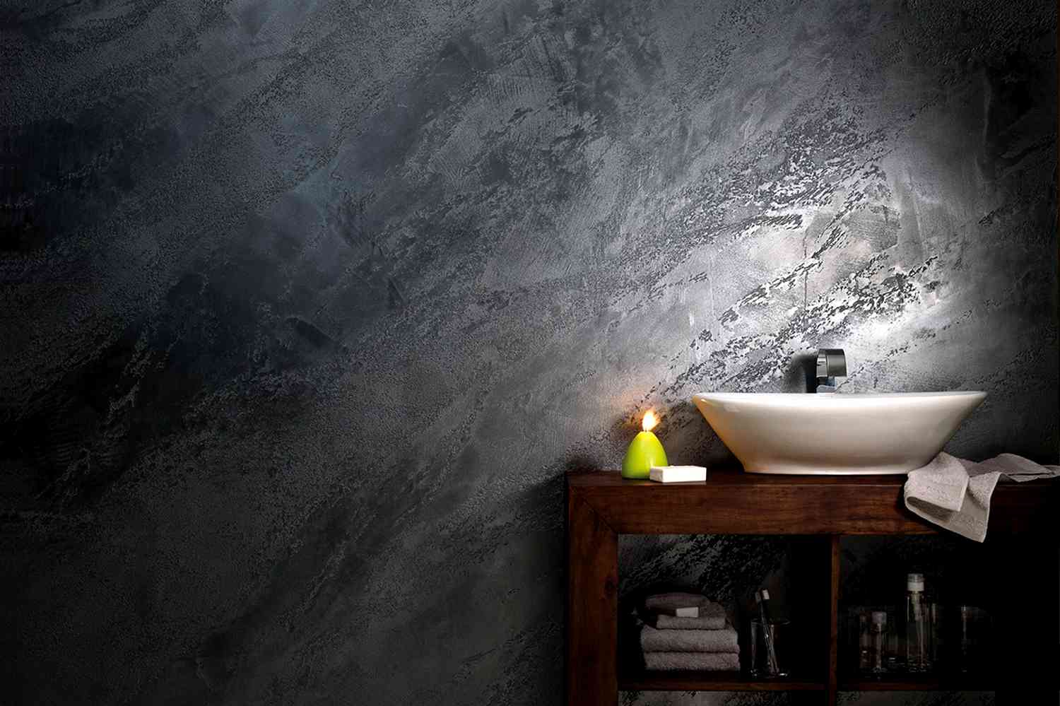 - Imperiale. Die Besonderheit der Komposition ist das Vorhandensein von Goldpigment, das funkelt und schimmert, wenn Licht darauf trifft. Stilvoll und seriös wirkt Schwarz mit einem goldenen Glanzputz.Eine gute Option für Interieurs im Art-Deco- und Vintage-Stil.