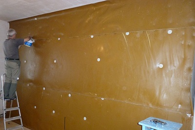 Es ist eine spezielle Mischung, die in einer dicken Schicht über den Putz gelegt wird. Die Methode ist ziemlich effektiv, aber es muss berücksichtigt werden, dass die Zusammensetzung mit Gipskartonplatten oder dekorativen Platten geschlossen werden muss.