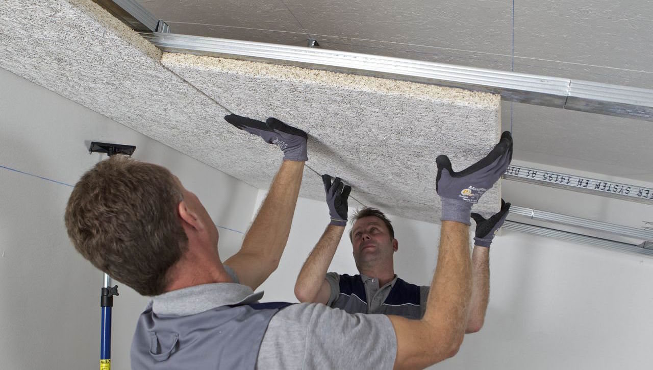 Platten aus Fiberglas und Mineralwolle absorbieren perfekt den Klang, haben aber ihre eigenen Eigenschaften. Zunächst müssen sie in Rahmen eingebaut werden, die anschließend mit Gipsplatten ummantelt werden, was zwangsläufig zu einer Verkleinerung des Raumes führt. Diese Methode ist jedoch sehr effektiv.