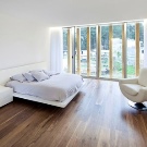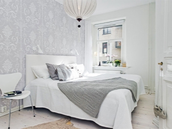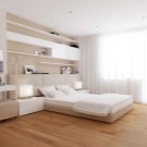 Für ein kleines Schlafzimmer ist Weiß die perfekte Lösung. Aber unter den Stilen sollte man Minimalismus ohne die Verwendung von kontrastierenden Farben bevorzugen. Der ideale Bodenbelag besteht aus pastellfarbenem Laminat, und die Wände können in jeder hellen Farbe gehalten werden.