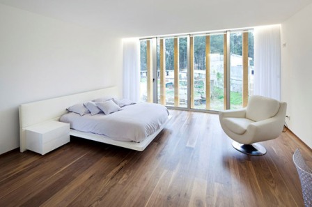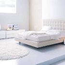 Im hellen Schlafzimmer kann der Boden aus beliebigen Materialien bestehen.Es ist vorzuziehen, keinen dunklen Kontrast mit der Gesamteinstellung zu erzeugen. Wenn der Boden verlegt ist, ist es Zeit, einen Teppich zu wählen, der Ihrem Schlafzimmer zusätzlichen Komfort bietet. Die klassische Kombination aus flauschigem weißen Teppich und leichten Möbeln kommt nie aus der Mode. Wenn das Design mit pastelligen und hellen Farben wechselt, kann der Teppich als Farbakzent verwendet werden.