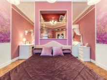 - Für die romantischsten Damen ist ein weißes und pinkes Schlafzimmer geeignet. Abhängig von Ihren Farbvorlieben kann eine rosa Tönung ein helles Ensemble verwässern oder umgekehrt in einem reichen Tonumfang Akzente setzen. Wählen Sie im ersten Fall weiße Textilien und lassen Sie nur die Kissen, Vorhänge und Accessoires in Farbe. Und in der zweiten ist eine größere Anzahl von hellen Textildesigns und mehr gesättigte Farbe der Wände zulässig.