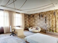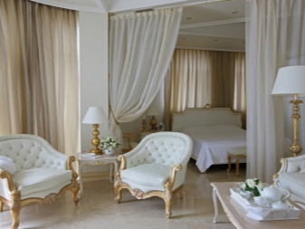 Bei der Auswahl der Möbel für einen Ort der Ruhe ist es wichtig, den Ton der Wände, des Bodens und der Decke zu berücksichtigen. Ein Ungleichgewicht in diesem Ensemble kann das gesamte Konzept der Raumgestaltung stören.