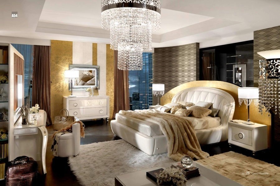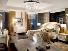 Denken Sie daran, dass Sie eine glänzende Oberfläche für ein Schlafzimmer benötigen, um Möbel mit der Umgebung zu kombinieren. Um übermäßigen Glanz zu vermeiden, versorgen Sie das Schlafzimmer nicht mit großen Spiegeln. Der Boden, die Wände und die Decken sollten matt sein, Teppich ist eine ausgezeichnete Option für den Boden. Seidenstoffe in Gardinen und Bettwäsche sollten vermieden werden.