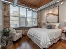 - Industrielles Design für kreative Naturen. Die Kombination von strukturiertem Interieur und hellen Backsteinwänden, eine Nachahmung kreativer Unordnung, eine gewisse Zufälligkeit sind die eingängigen und eigenartigen Merkmale dieses Stils. Es erlaubt sogar die Verwendung einer Matratze als Bett. Ein solcher Raum kann die Vorherrschaft von Weiß über andere zulassen. Es wird empfohlen, die Palette mit gedämpften Farbtönen zu verdünnen.