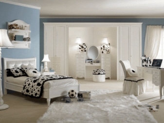 - Die Hauptfarbe der Möbel. Ausgehend vom Schirm des Headsets können Sie zusätzliche Farben auswählen, die einem bestimmten Bereich entsprechen. Die Hauptsache - übertreiben Sie es nicht mit der Farbvielfalt, denn das Zimmer kann alyapisto aussehen.