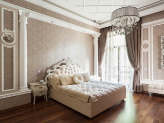 Wände können mit Tapeten gemalt werden oder gemalt werden. Mit einem hellen Ensemble können Sie flüssige Tapete verwenden. Dies verleiht der Oberflächentextur und dem klassischen Design des Raumes eine frische Note. Es wird nicht empfohlen, absolut weiße Wände zu machen, man braucht mindestens einen hellen Farbton.