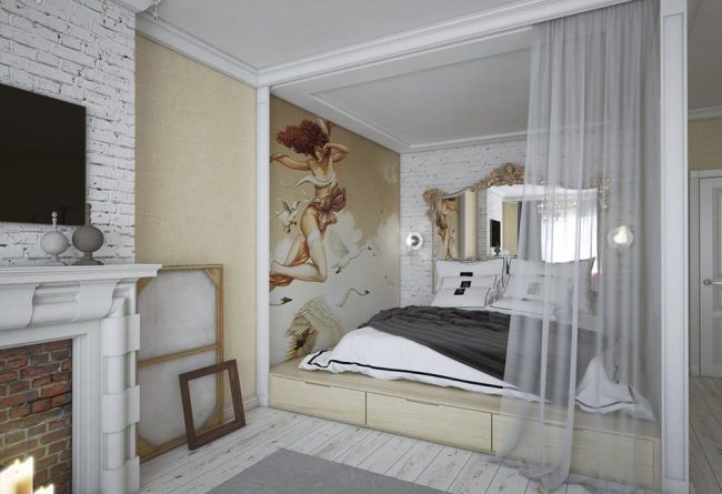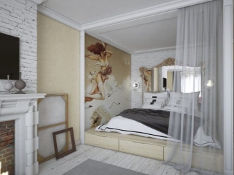 - Es ist notwendig, dieses Schlafzimmer mit zusätzlicher Dekoration zu füllen, so dass der Innenraum nicht abgeschlossen zu sein scheint.