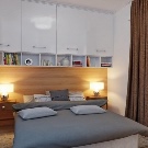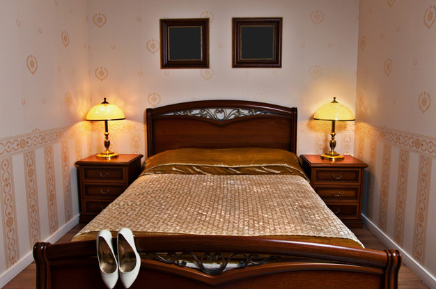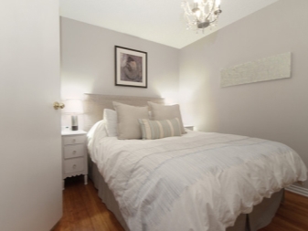 Die Aufgabe, Möbel zu wählen, ist ebenfalls wichtig. Fensterlose Räume sind in der Regel nicht groß.Aus diesem Grund müssen Sie die Möbel sorgfältig auswählen und nur das Nötigste installieren. Wenn der kleine und dunkle Raum mit Möbeln gefüllt ist, wird eine Illusion von überladenem Raum geschaffen. Das Hauptbedürfnis in der Einstellung irgendeines Schlafzimmers ist ein Bett. Ergänzen Sie es mit allen Gegenständen eines Schlafzimmer-Sets, das Sie brauchen. Idealerweise sollten sie auch aus hellem Holz sein.