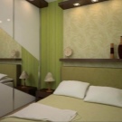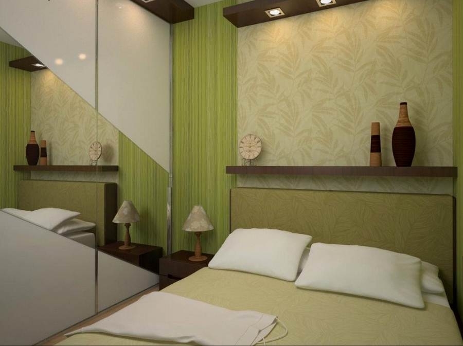Sie können zum Beispiel eine Wand monochrom beige machen und die restlichen drei mit einem kaum wahrnehmbaren zarten Muster einfügen. Malen wird oft als Alternative zu Tapeten verwendet. In einem kleinen dunklen Raum ist es am besten, matte Farbe zu verwenden. Sie können an einer der Wände einen Ganzkörperspiegel installieren.