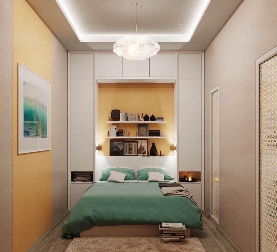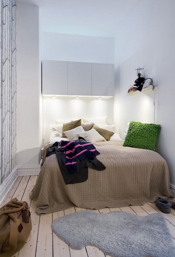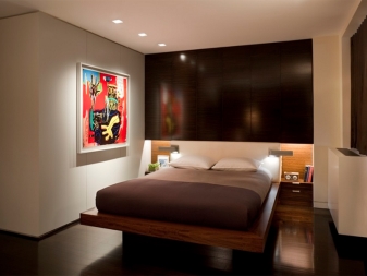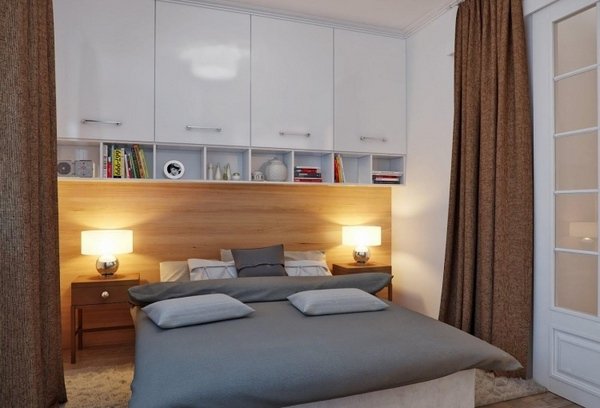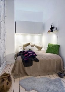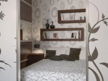 Ein Mini-Schlafzimmer ohne Fenster ist eine gute Option für diejenigen, die nicht genug Platz haben. Selbst wenn Sie ein kleines Haus oder eine kleine Wohnung haben, können Sie eine Nische umwandeln oder ein Schlafzimmer im Schrank einrichten. Ein taubes Schlafzimmer mit einer Nische eignet sich für Dauerwohnungen und als Gästezimmer. Ein weiterer Pluspunkt ist, dass direktes Sonnenlicht nicht in den Raum fällt. Tapete und Vorhänge verblassen nicht, und es ist sehr bequem.