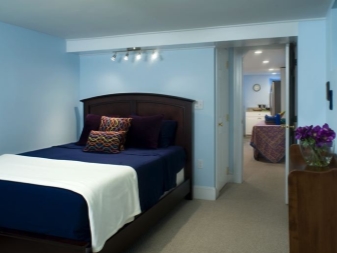 Ein weiterer wichtiger Schritt, der im Voraus durchdacht werden muss, ist die Installation zusätzlicher Beleuchtung.Da kein Fenster im Raum ist, benötigen Sie künstliches Licht. Designer raten, nicht auf eine Quelle beschränkt zu sein. Auch als Deckenleuchte ist es besser, mindestens zwei Lampen zu nehmen.