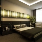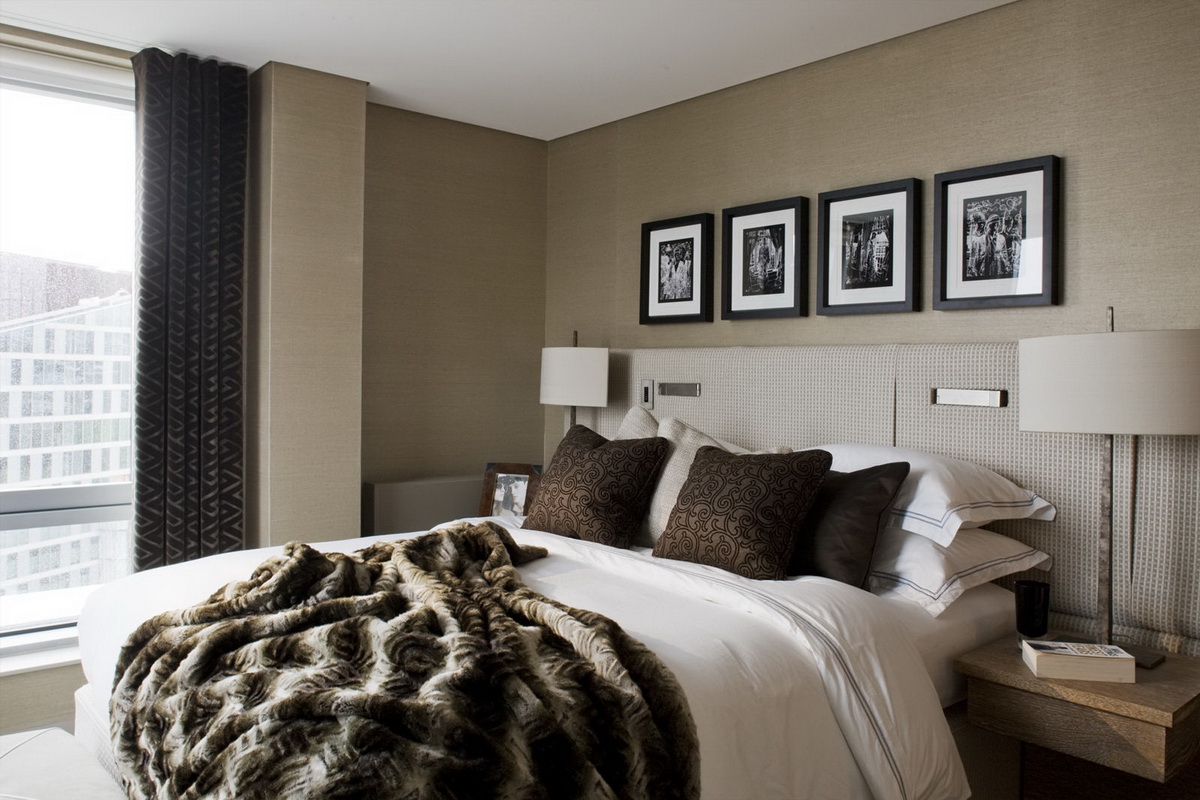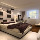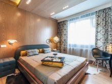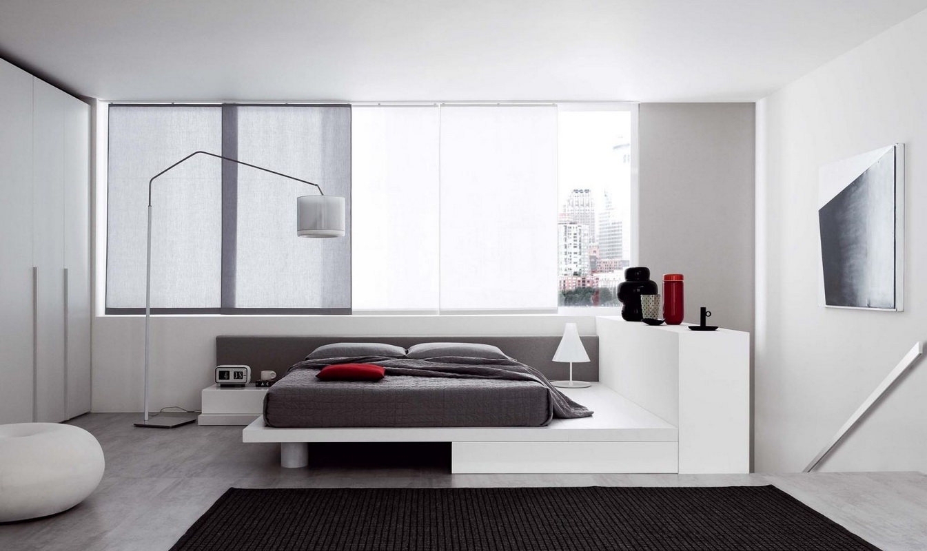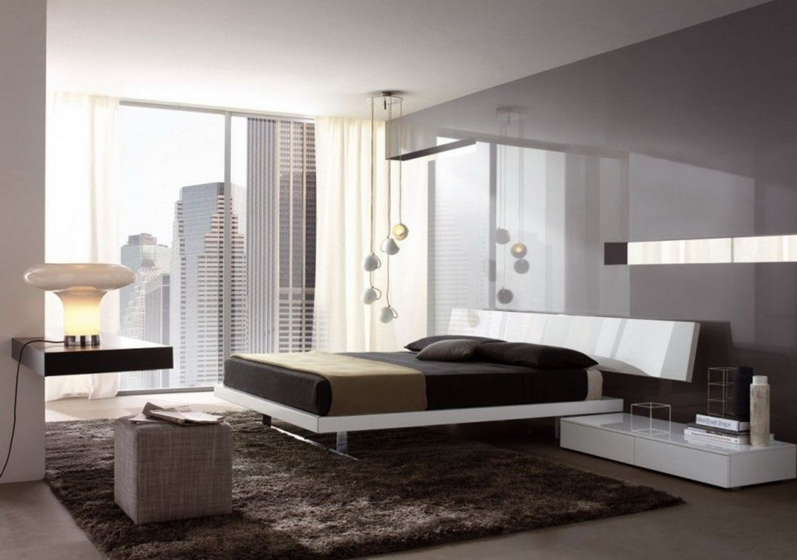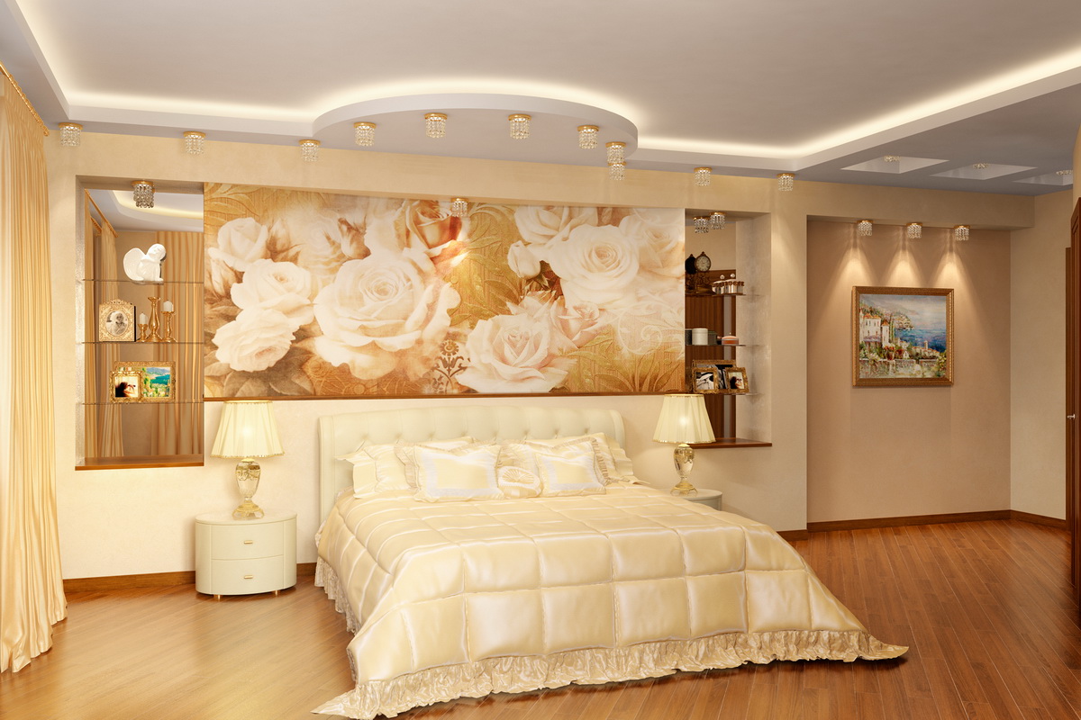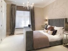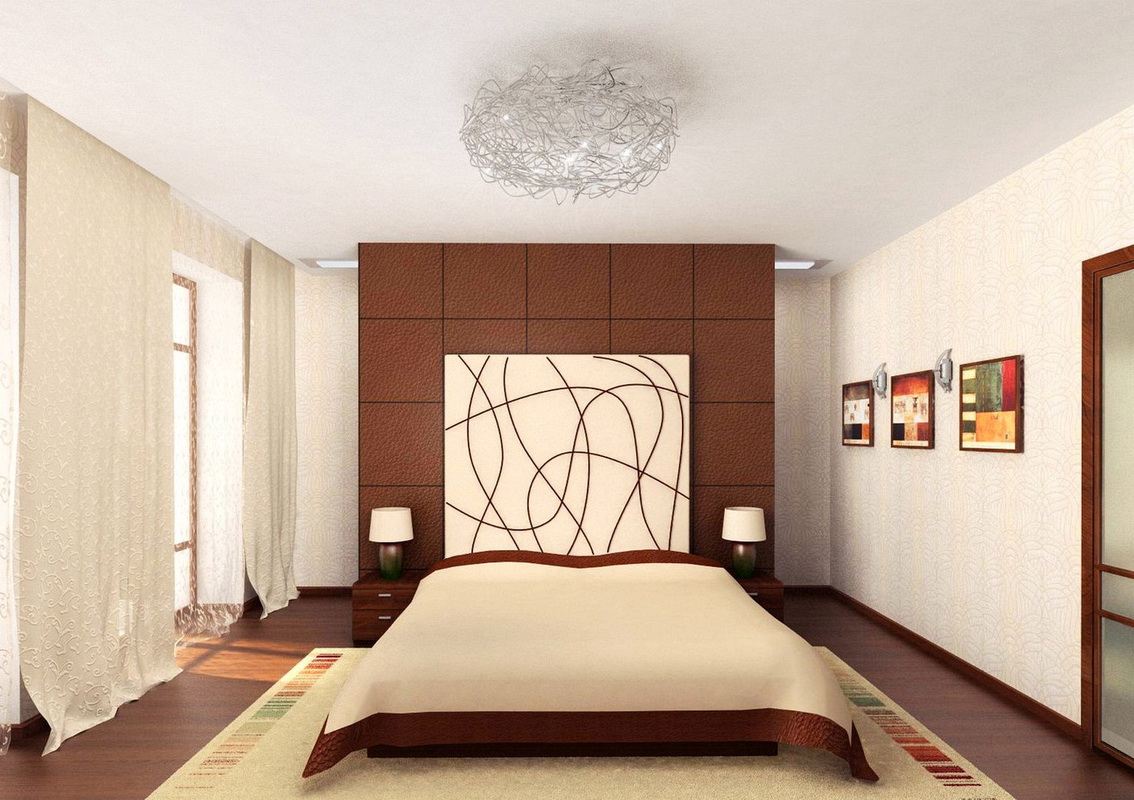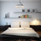 Wie gesagt, das Bett ist das Hauptthema im Schlafzimmer, so wie man den Rest der Möbel ausstattet, ist es notwendig, aus der Definition seines Platzes im Raum zu entscheiden. Die Lage des Bettes, sowie andere Einrichtungsgegenstände sollten die freie Bewegung im Raum nicht stören, eine Person sollte nicht zufällig auf zufällig platzierte Gegenstände stolpern. Die bequemste und häufigste Variante der Lage des Bettes ist die Lage seines Kopfteils an einer Wand oder Nische.
