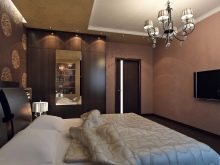 - Speichersysteme Das Schlafzimmer sollte Stauraum haben. Zu diesem Zweck ist es besser, die Einbauschränke, Kleiderschränke Höhe der Decke zu verwenden.Moderne Armaturen ermöglichen es Ihnen, ein praktisches Speichersystem zu schaffen und gleichzeitig einen nutzbaren Bereich zu erhalten. Darüber hinaus bieten in Neubauten oft im Voraus eine Speisekammer, Ankleideraum oder die Möglichkeit, diesen Raum im Schlafzimmer zu schaffen. Dies entlädt visuell den Raum und ermöglicht es Ihnen, den Raum von unnötigen Dingen zu befreien.