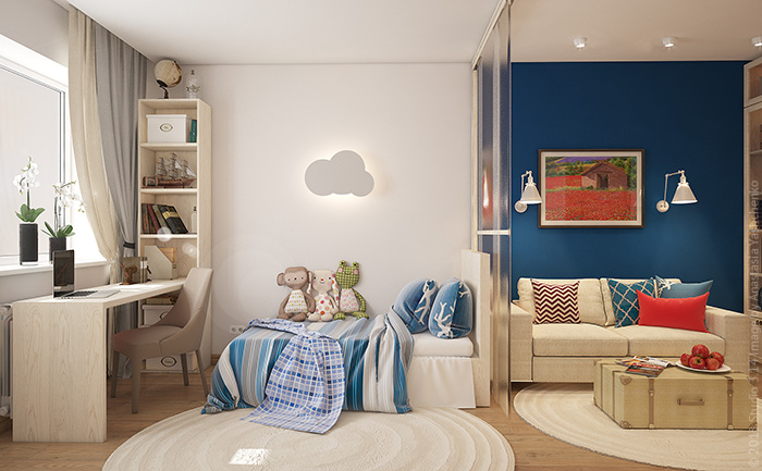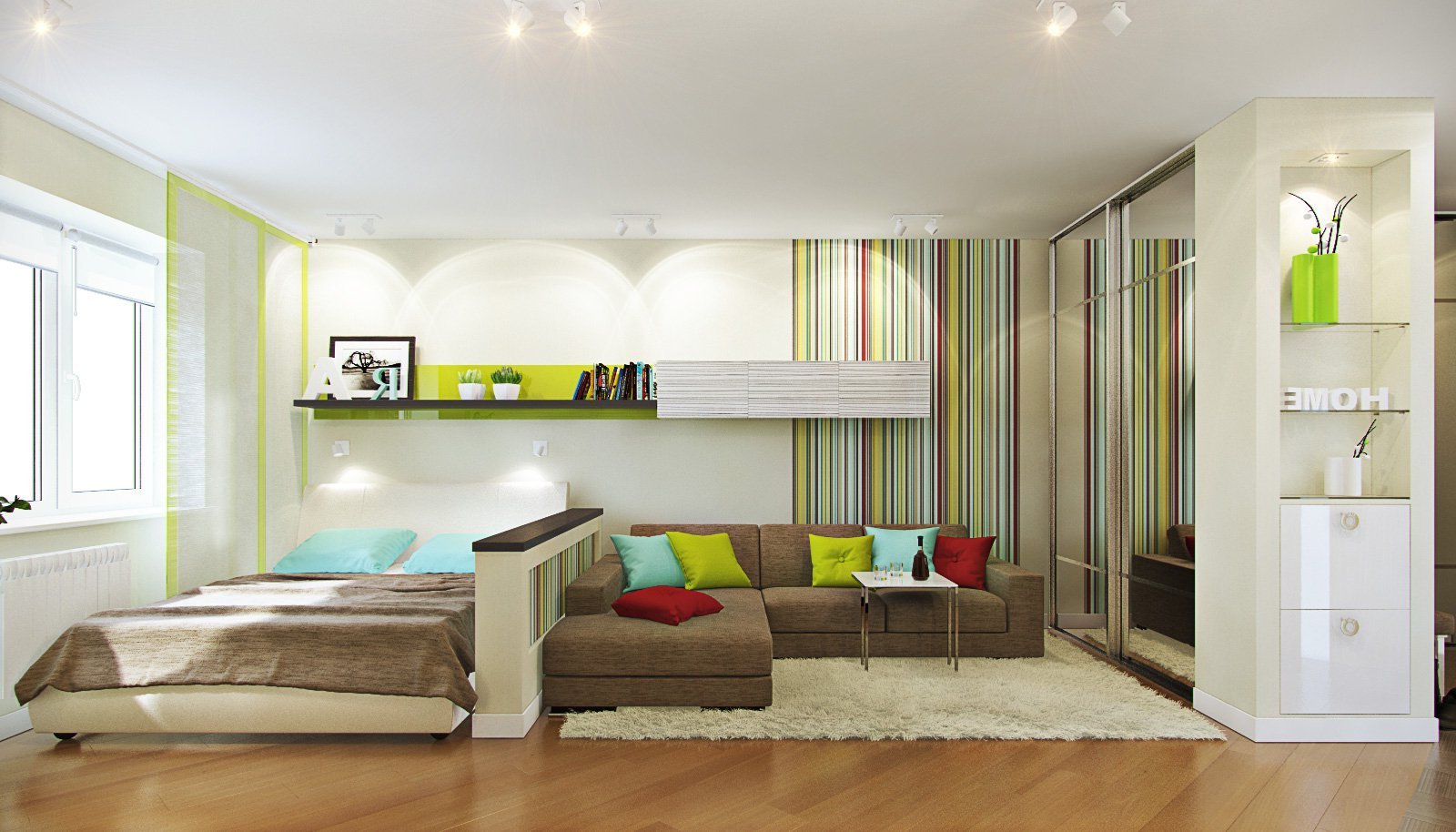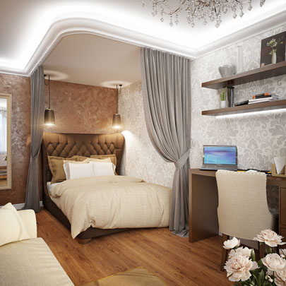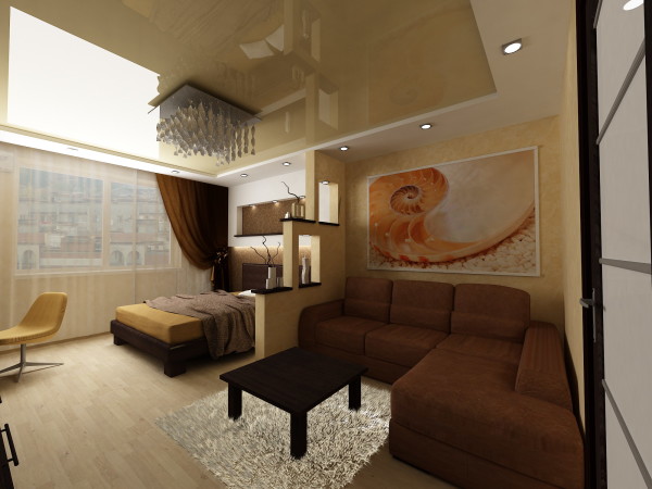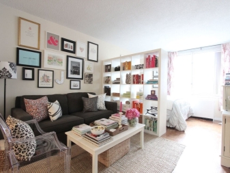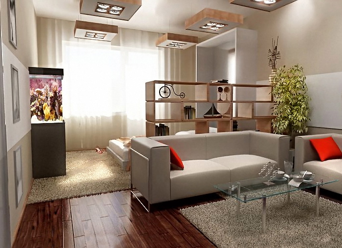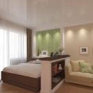 Wenn die Renovierung endet oder Menschen in eine neue Wohnung umziehen, sollten sie ein Designprojekt in ihren Händen haben, wo die Grenzen der Zonen im Raum deutlich markiert werden, zum Beispiel wird der Ruheplatz vom Arbeitsraum getrennt.