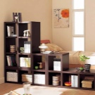 - Racking. Eine gute Möglichkeit, das Gebiet zu teilen und Platz zu sparen. Bücher, Figuren, Bilderrahmen und sogar Kleidung können in die Regale gestellt werden.