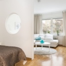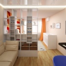 Wenn die Fläche der Wohnung 17 Quadrate ist, kann der Raum in Abschnitte unterteilt werden mit: