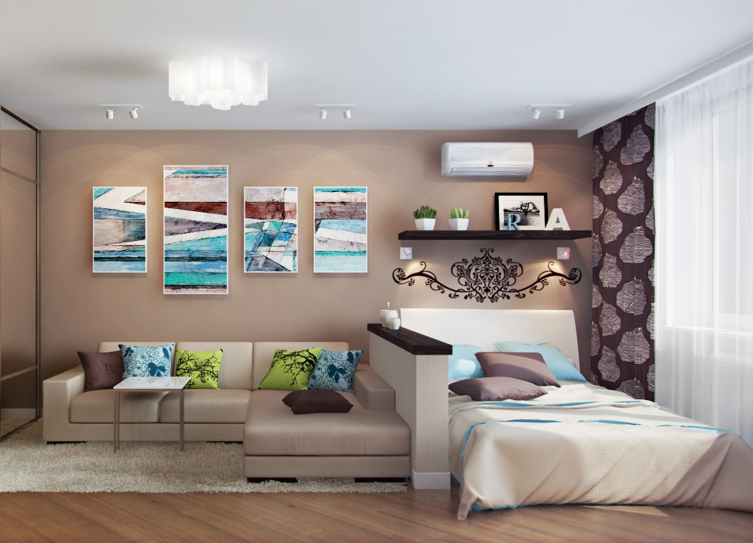 Nicht alle Menschen haben die Möglichkeit, in großen, geräumigen Wohnungen zu wohnen. Aber auch in einem kleinen und begrenzten Raum können Sie einen gemütlichen Ort einrichten, um alle Ihre Familienmitglieder zu entspannen und lieben Gäste zu treffen. Zum Beispiel können Sie oft im selben Raum das kombinierte Wohn- und Schlafzimmer sehen.