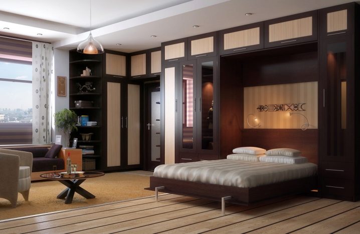 Das verwandelnde Bett nimmt die Installation eines Bettes in einem sogenannten Fall oder der Nische an, die besonders in einer Wand ausgerüstet wird.Mit einer leichten Bewegung kann selbst die empfindlichste Frau ein Wohnzimmer in eine Schlafecke verwandeln. Gleichzeitig bleiben alle anderen Möbelstücke an ihrem gewohnten Platz, nichts muss bewegt werden.