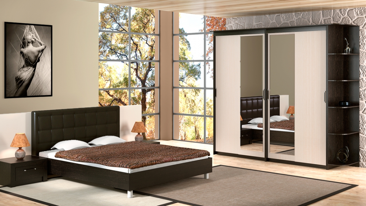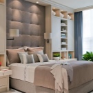Für die südliche Anordnung des Schlafzimmers wählen Sie kalte Farbtöne der Wände - grau, schwarz, blau, für die nördlichen - warmen wie Beige, Braun und ihre Schattierungen.