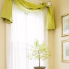 - Wählen Sie für eine kleine halbrunde Öffnung kurze Vorhänge aus durchscheinendem Stoff.