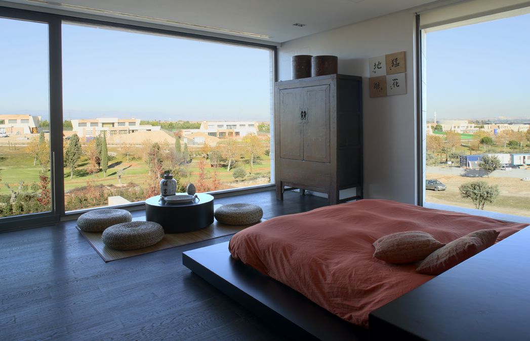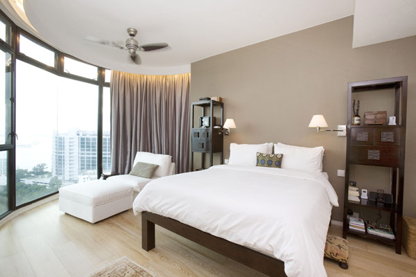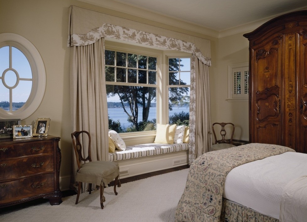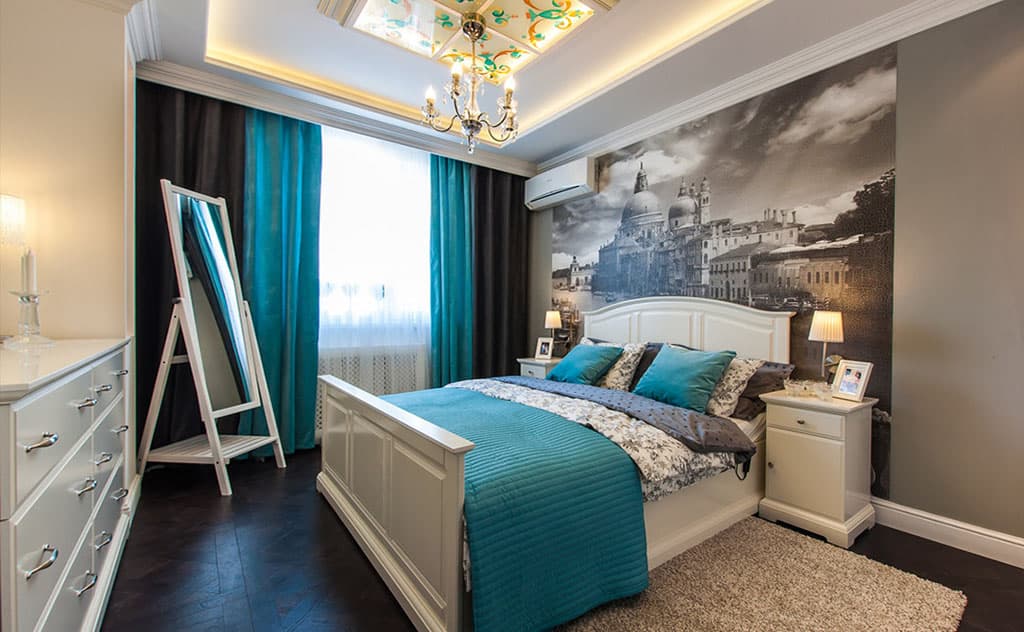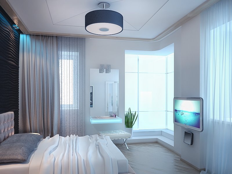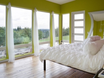 - Die Öffnung kann im Schlafzimmer akzentuierenwenn es Panorama oder sehr groß ist.Wenn es zwei oder drei Fenster gibt und sie sich an einer oder zwei Wänden befinden, dann ist das eine Art "Trick" des Raumes;
