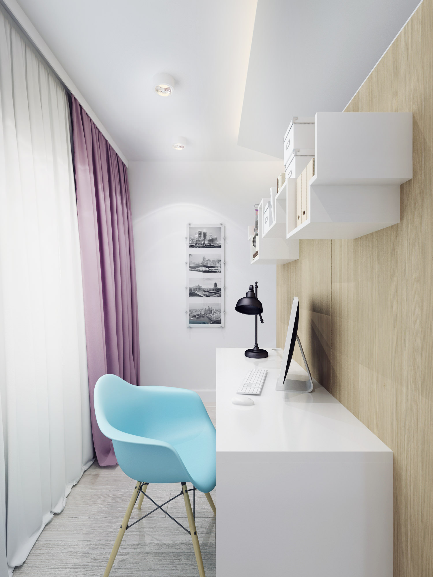 Wenn der Raum lang und schmal ist, ist die Position des Computertisches am Fenster die beste Lösung.