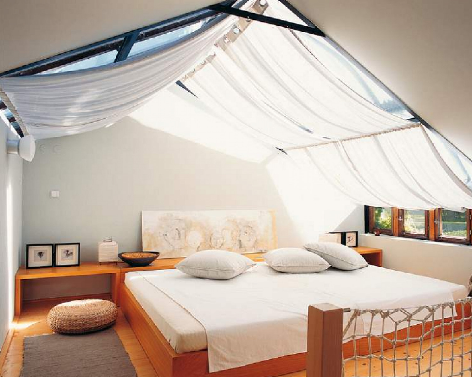 - Keine von ihnen geht ohne Vorhänge oder JalousienDaher ist ein Schlafzimmer mit Öffnungen fast 100% gemütlich und gemütlich.