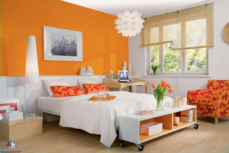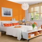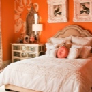 Viele assoziieren es mit süßen und saftigen Orangen, Herbstlaub und der Sonne. Die Wirkung dieser Farbe ist positiv, aber Designer raten nicht, sie zu missbrauchen, wenn sie ein Schlafzimmer schmücken.